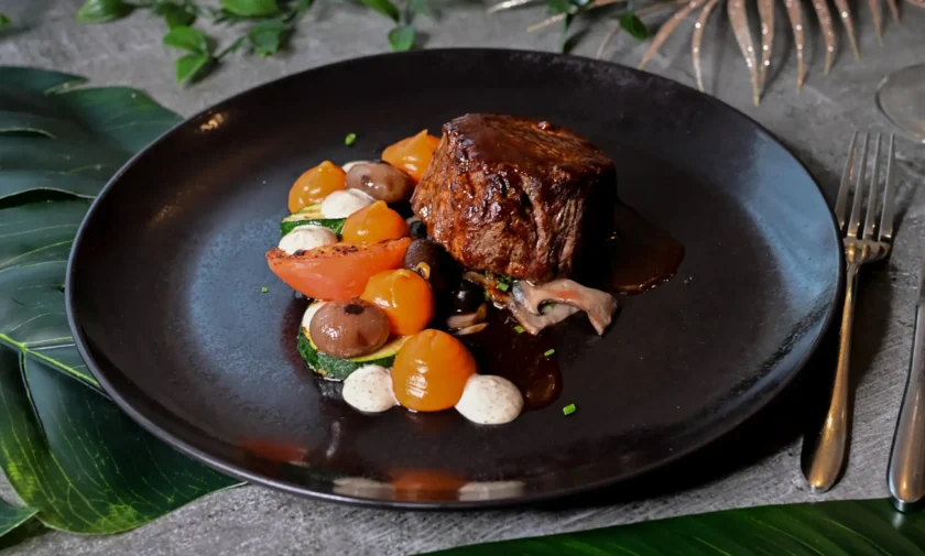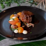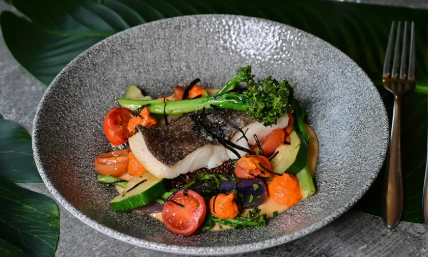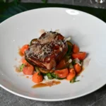 • Melnās ātes fileja cepta krāsnī ar ceptiem dārzeņiem un greipfrūtu- sviesta mērci