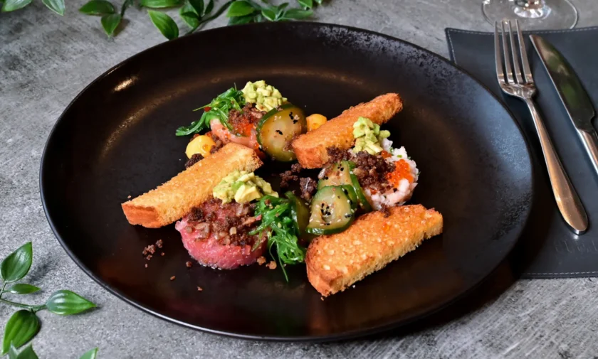 • Tunča tartars ar avokado salsu un marinētām jūras aļģēm