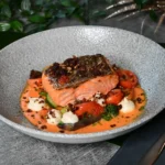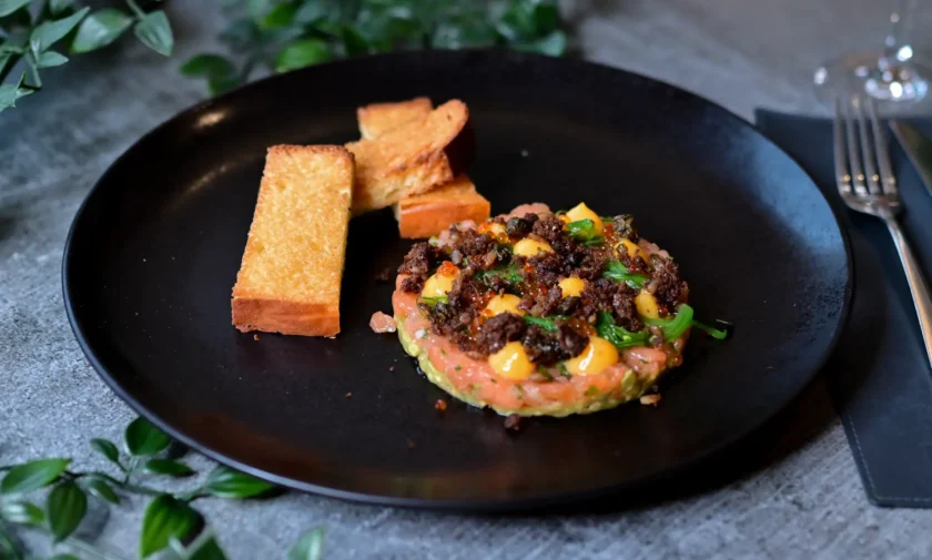 • Laša tartars ar avokado salsu un marinētām jūras aļģēm