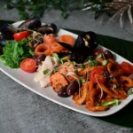 Dārzeņi, lasis, mīdijas, ātes fileja, garneles, tomāti, saldais krējums – 7,2,4,9
