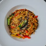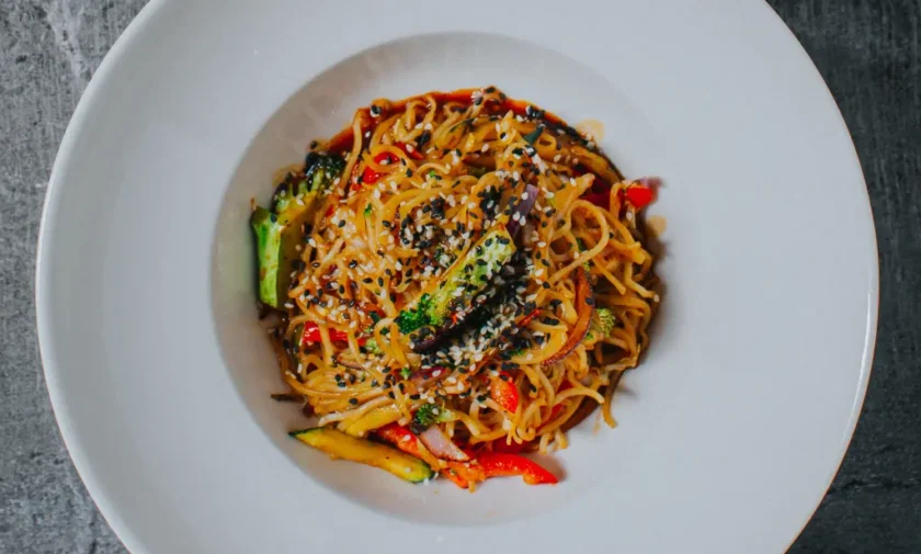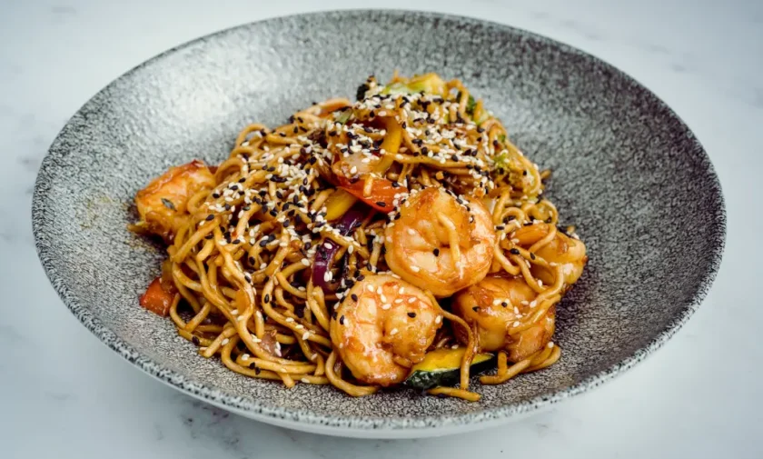Gardas Olu nūdeles ar vistu nedaudz pikantā mērcē