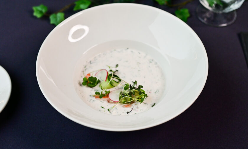 • Baltā aukstā zupa ar tīģergarnelēm namatēva gaumē
