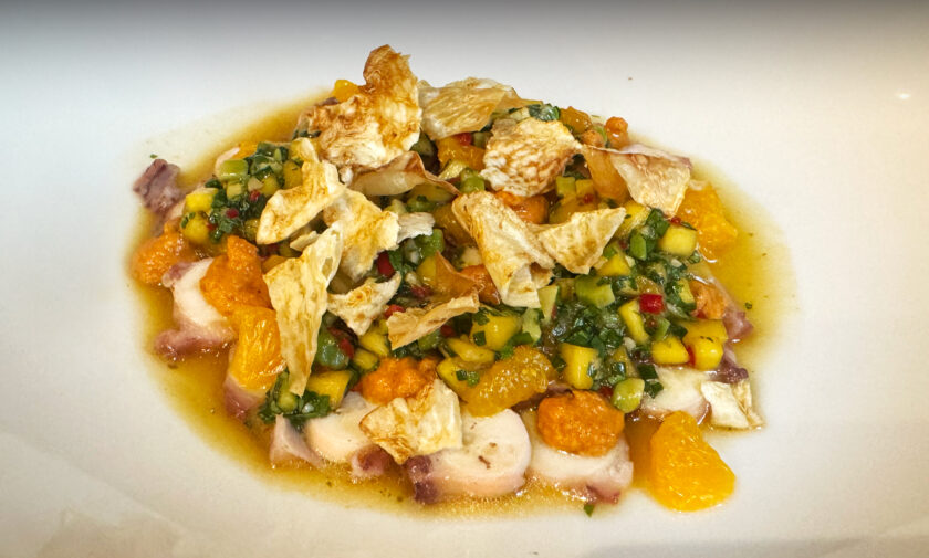 mango, mandarīni, selerija čipsi, romesco biezenis -4, 6, 7, 8, 9