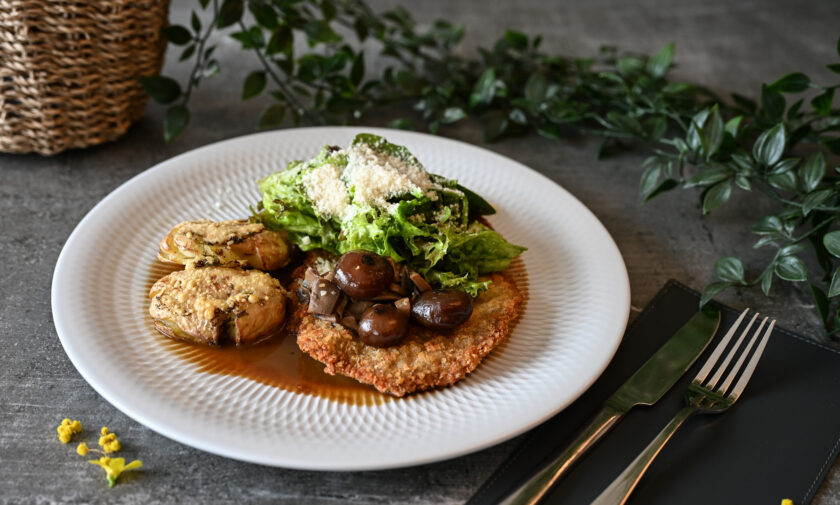 Teļa galas šnicele ar parmezāna siera garozu